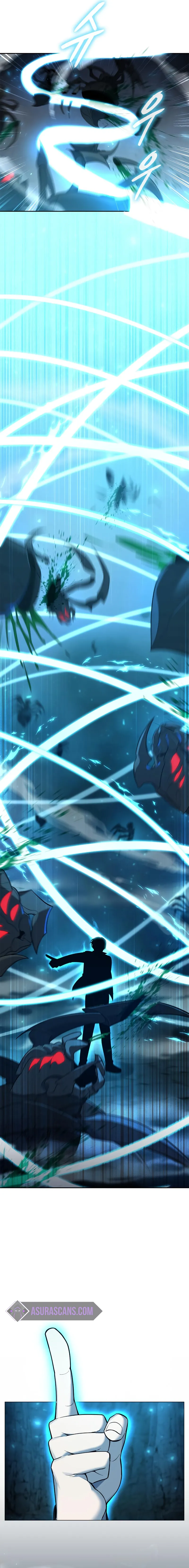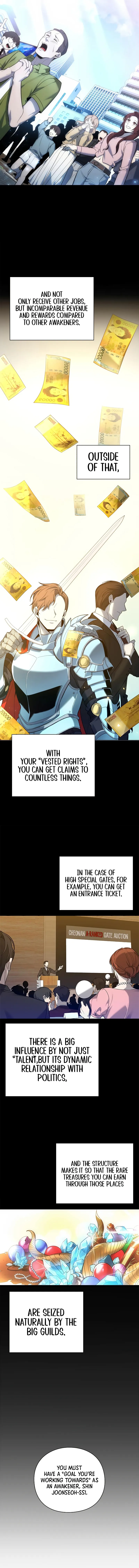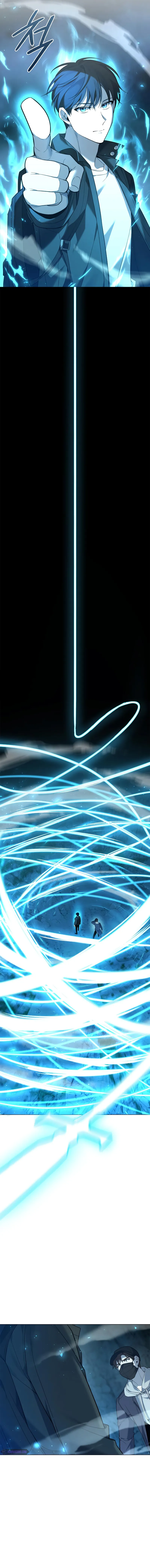 The chapter begins with the main character, Joonseoh, preparing for a dungeon raid, facing a large group of 'Legion Spiders'. He plans to use his sword-based abilities despite mana limitations and a warning about his reckless sword qi use. Meanwhile, there's a side conversation about guild privileges, including gate purchases. Joonseoh has previously rejected the powerful Overkill guild due to trauma linked to the 'Dawon Guild' annihilation. He proceeds into the dungeon knowing that he needs to fight without relying on help.