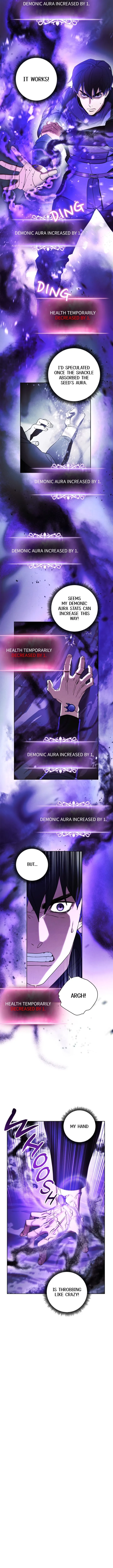 The chapter opens with the main duo navigating a strange maze, eventually discovering a massive tree that produces demon seeds. They realize these seeds are connected to a previous antagonist group and decide to destroy the tree. One character absorbs demonic energy from the seeds, temporarily increasing their power in preparation for a confrontation. Simultaneously, a separate group is dealing with hostages from the antagonist group who are now vomiting demon seeds, creating a new crisis.