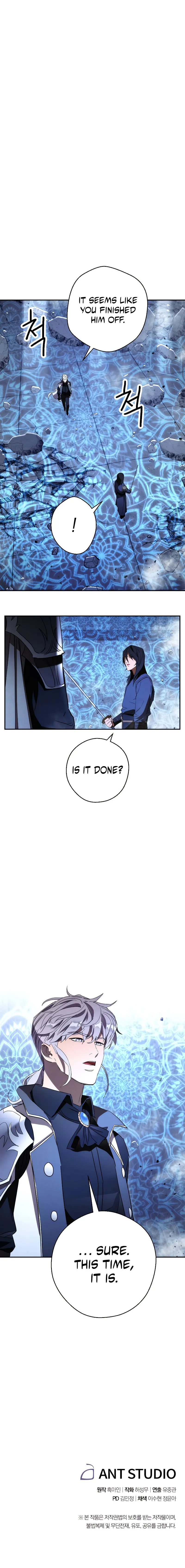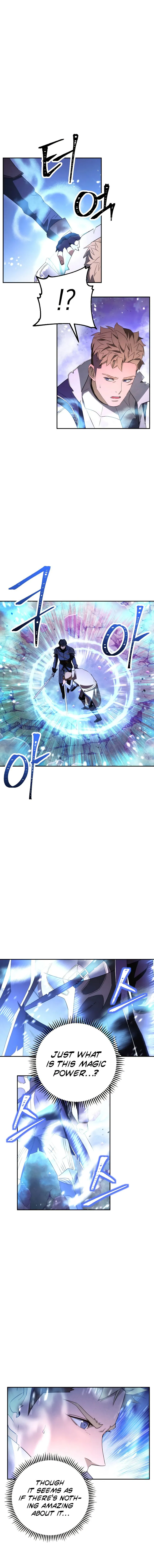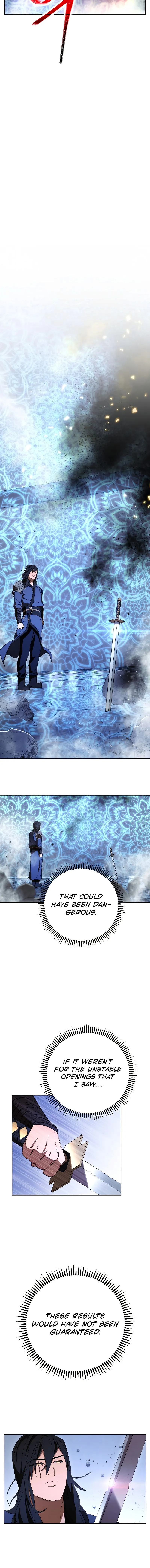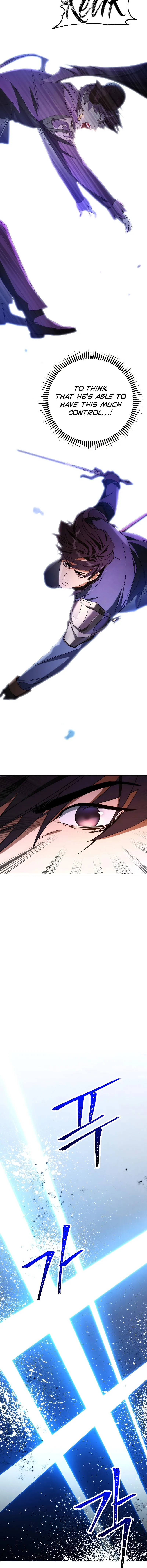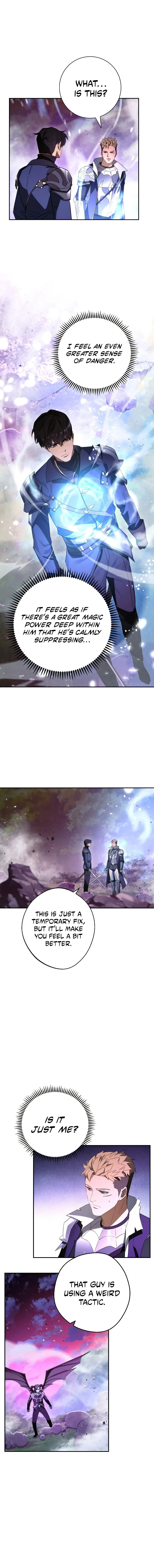 The chapter opens with a demon king being defeated by a human, an event considered impossible. The human, although wounded, displays incredible endurance and the ability to suppress a vast magic power. Observing characters acknowledge his dangerous power and control, noting his progress is faster than expected. The chapter concludes with the human healing briefly and preparing for further conflict using a mysterious ability.