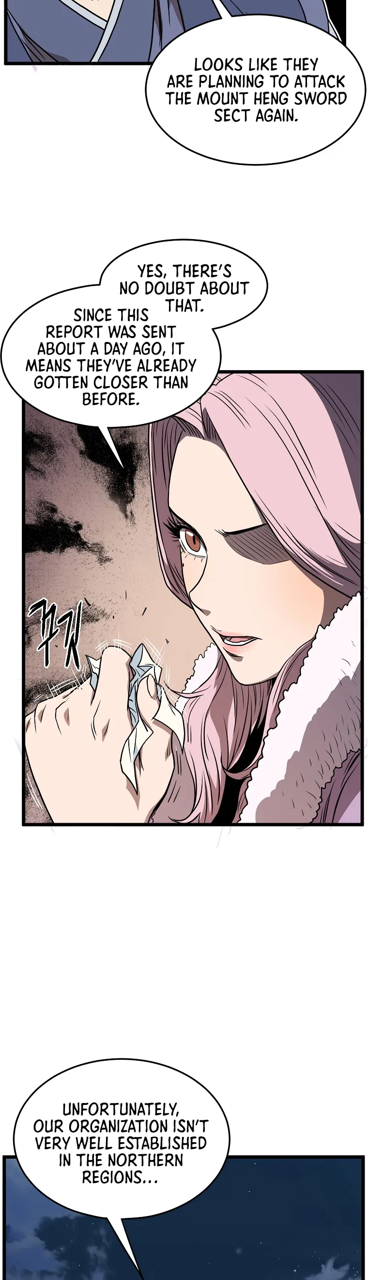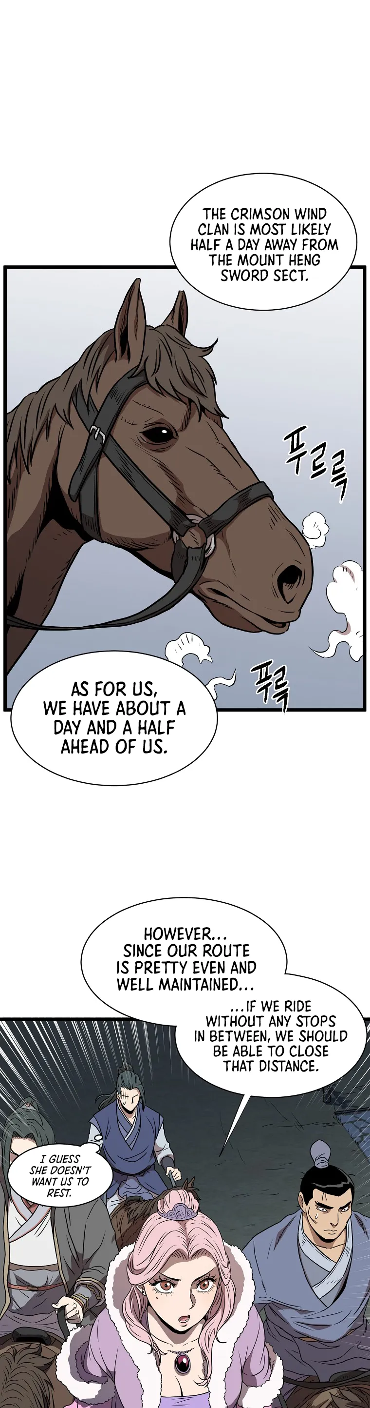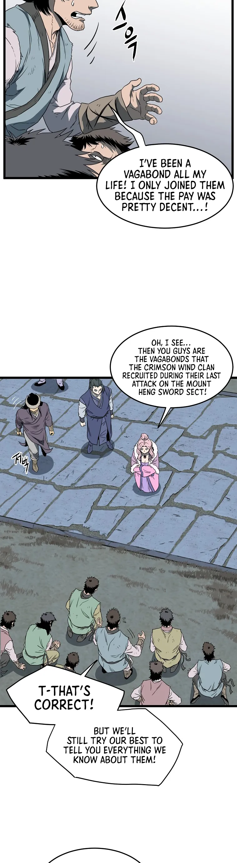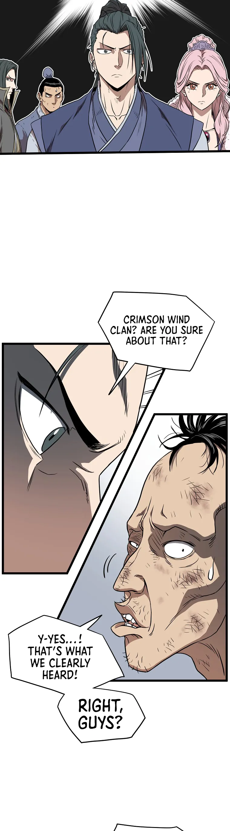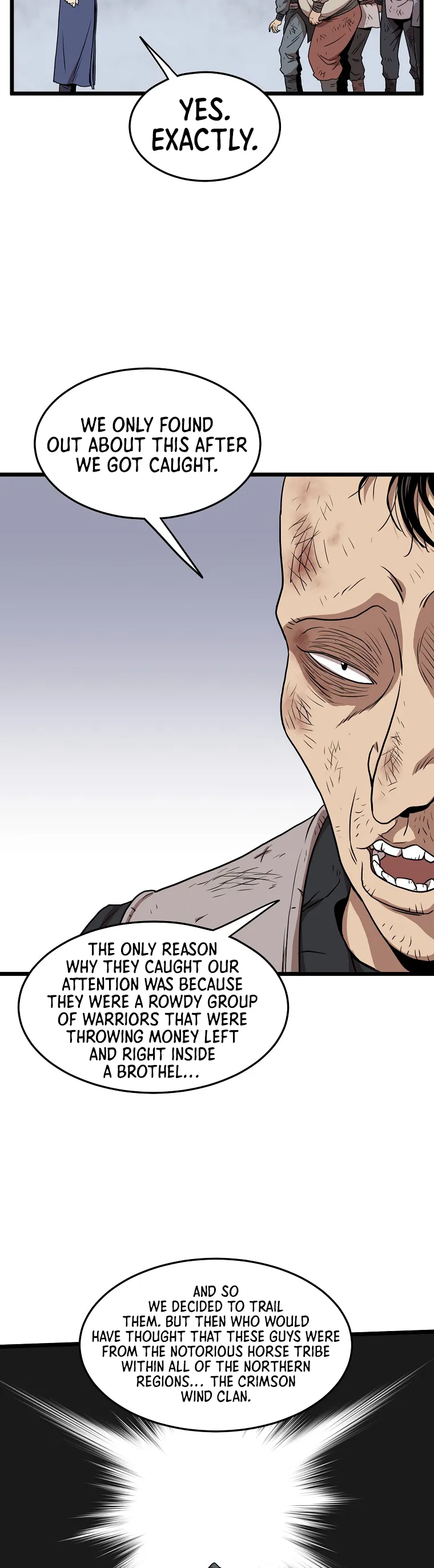 A captured group reveals the location of the Crimson Wind Clan, a notorious group of warriors, while the Clan itself carries out brutal acts of violence, leading the protagonist group to prepare for confrontation.