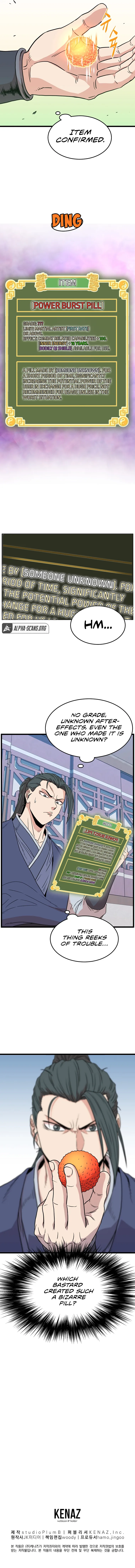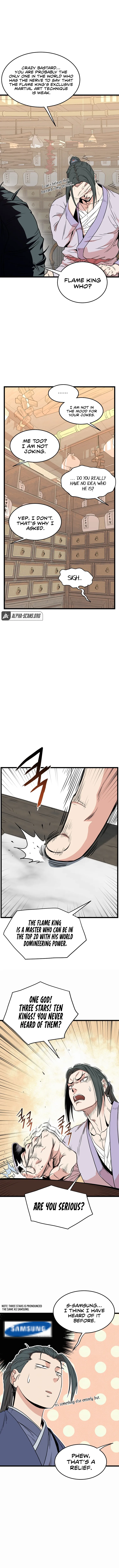 The chapter opens with the Mount Heng Sword Sect expressing thanks for being saved and seeking forgiveness for a past mistake made by the leader's father. However, one character refuses to accept their apology. The chapter then shifts to a discussion about a mysterious pill and the protagonist is accused of stealing martial arts techniques, specifically the Divine Palm of Fire. The reveal that this technique belongs to the legendary Flame King is a major concern. The chapter ends with the group discussing the Flame King and his power.