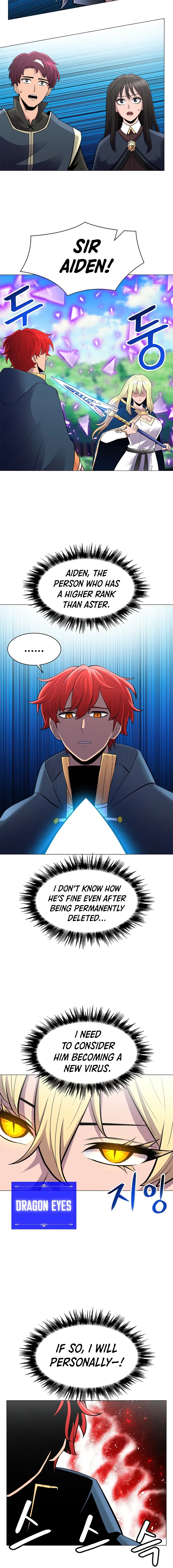The chapter opens with a character on the verge of deletion before another character intervenes, revealing that the first character was a spy. This leads to a conversation about a larger plan and the importance of not losing power. Simultaneously, a different character faces a powerful and dangerous opponent, who displays abilities similar to a past encounter with Sirius. The conflict escalates, and the character orders allies to flee and then confronts the opponent about the Administrator's motives.